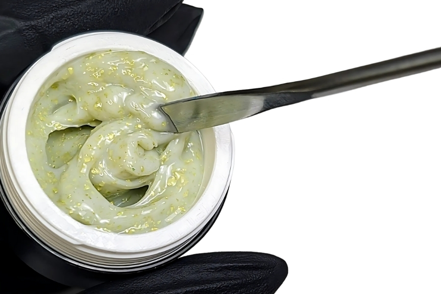 Marmor Builder 11 ist ein farbiges Aufbaugel mit Glitterflakes für kreative, ausdrucksstarke Marblelooks. Die thixotrope, leicht standfeste Textur ermöglicht präzise Modellagen ohne Verlaufen.