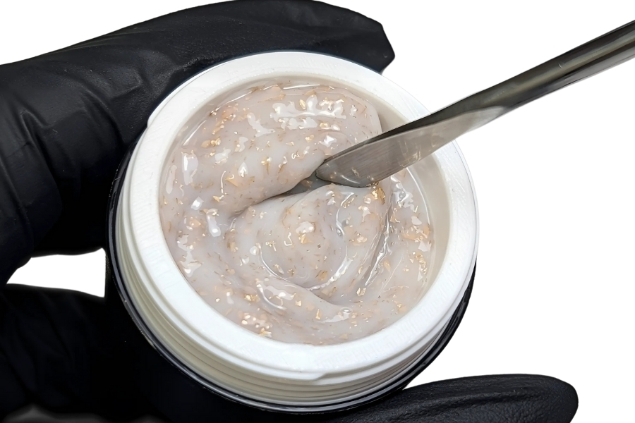 Marmor Builder 2 ist ein farbiges Aufbaugel mit feinen Glitterflakes für individuelle Marble- und Effektdesigns. Die standfeste, thixotrope Textur verteilt sich geschmeidig, bleibt formstabil und sorgt für ein gleichmäßiges Finish.